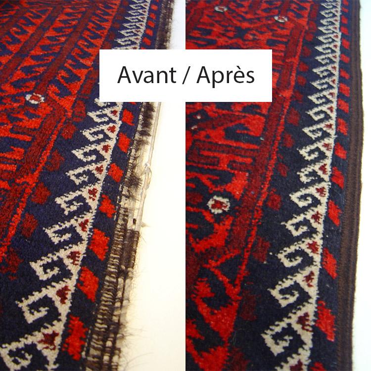 Restauration de tapis à Angers, nettoyage de tapis, reprise de lisières et franges, estimation de tapis anciens (intervention 49).