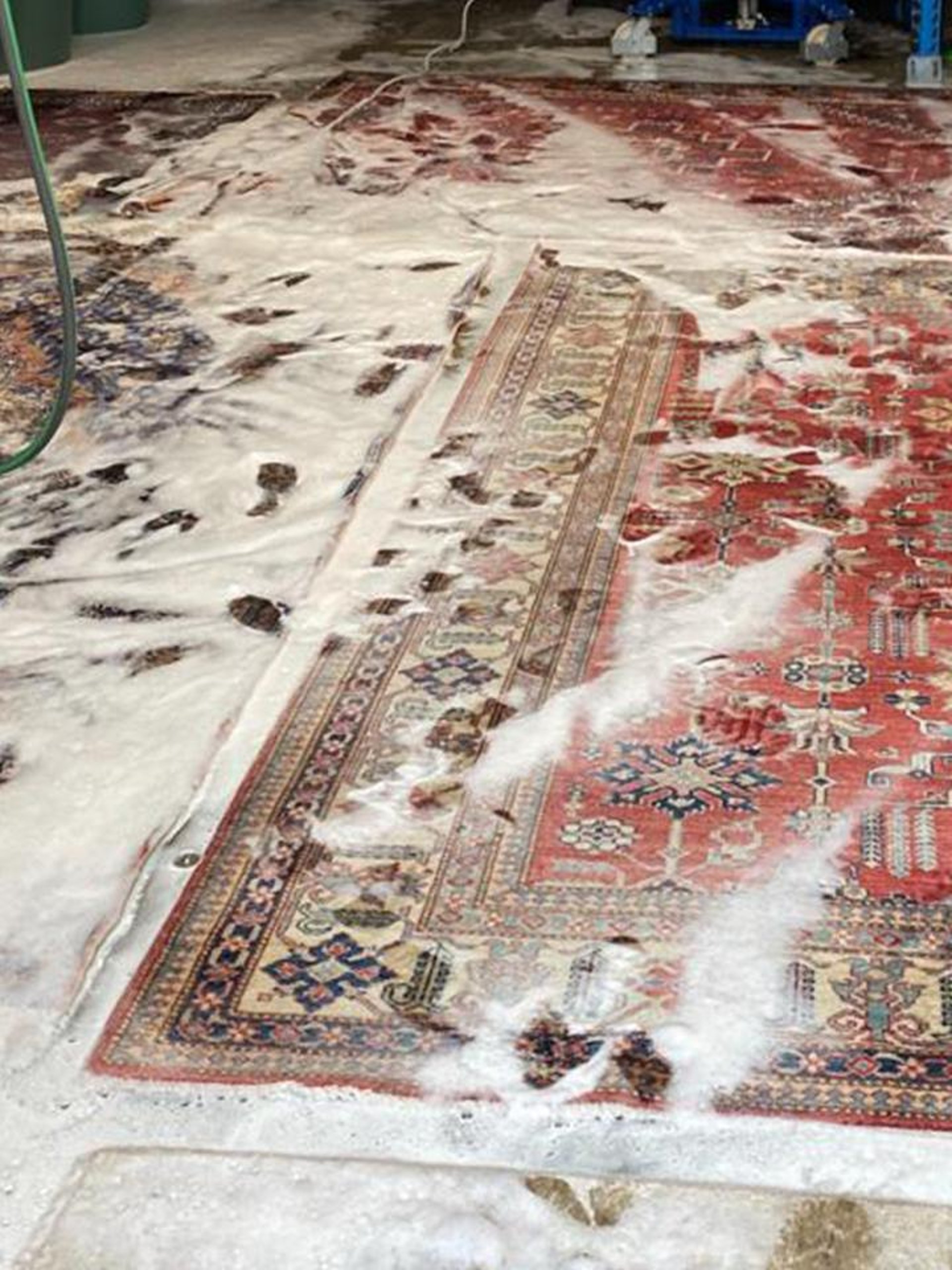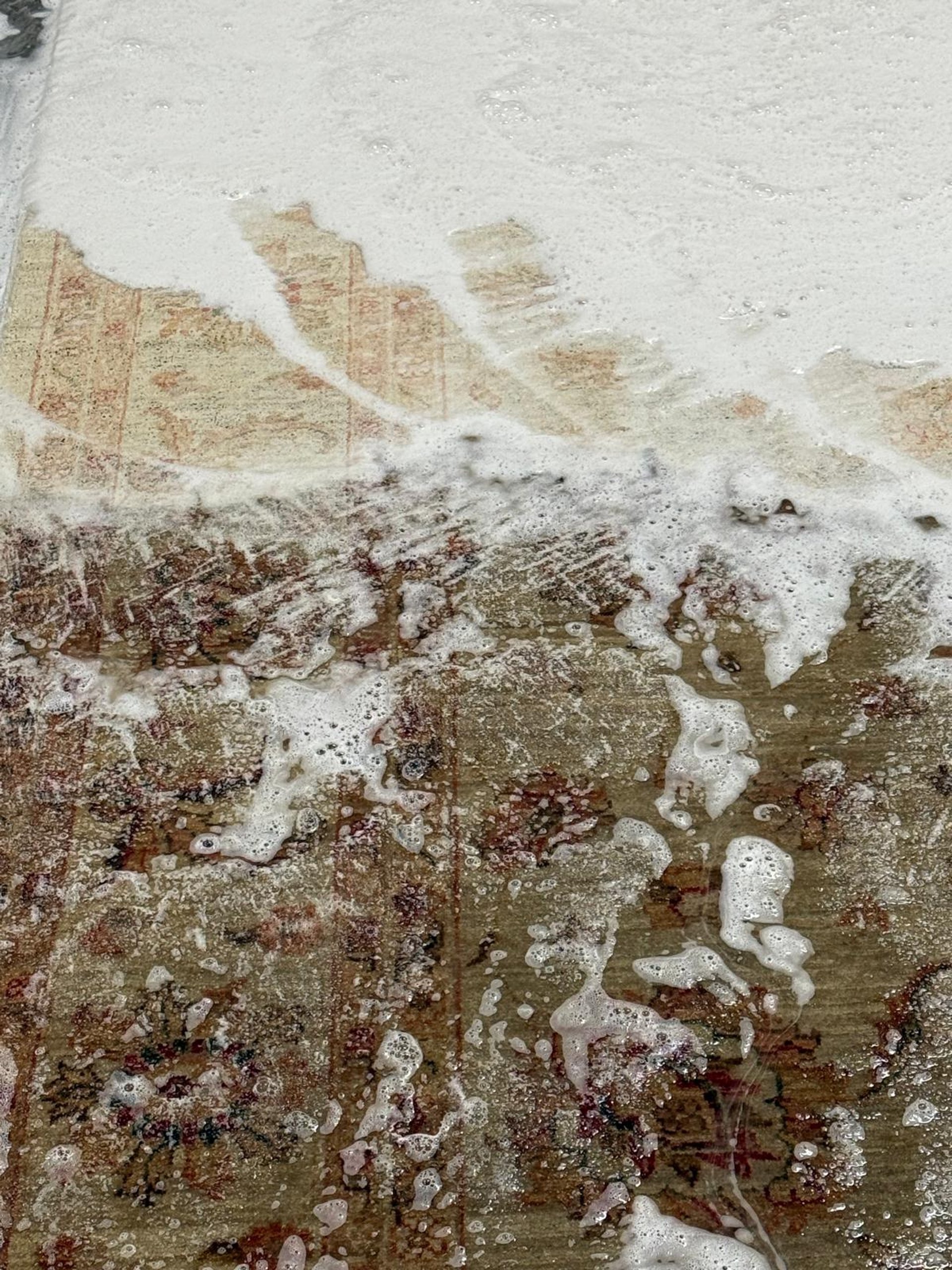 Pour les tapis anciens, nous réalisons un traitement de fixation des couleurs. Cette méthode prévient toute décoloration pendant le nettoyage et garantit des teintures stables, conservant l’éclat et l’authenticité des nuances.