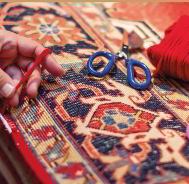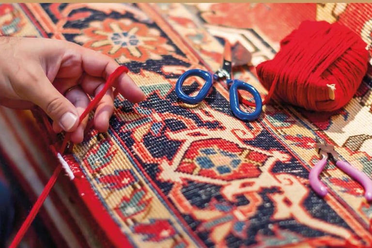 Restauration de tapis à Rezé, nettoyage de tapis, reprise de lisières et franges à Saint-Sébastien-sur-Loire, réparation de tapis et estimation à Vertou.