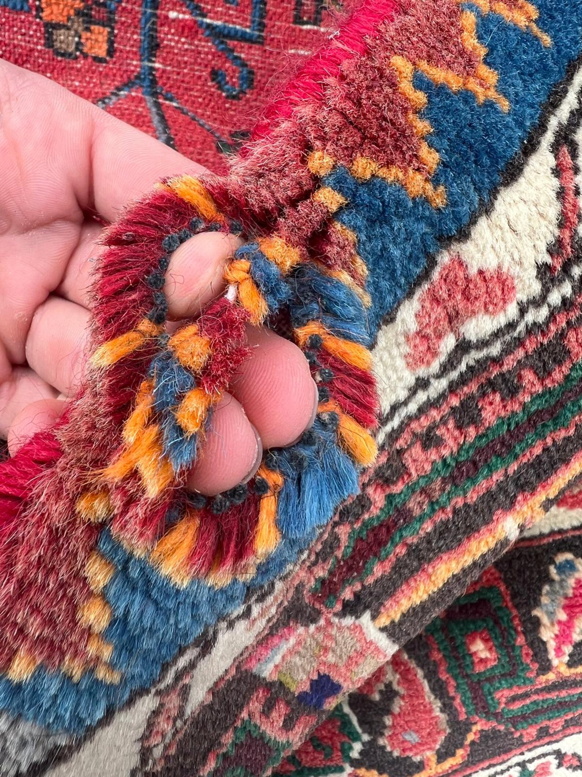 Restauration de tapis à Guérande, reprise des franges et bords de tapis au Pouliguen, nettoyage de tapis délicats (laine/soie) selon l’état.